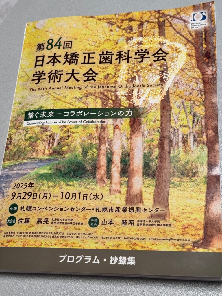9月29~休診日のお知らせ 2025.09.28 札幌で開催される第84回日本矯正歯科学会へスタッフ共に参加するため 9月29日、30日、10月1日を休診とさせていただきます。 通っていただいてる患者さんにはご迷惑をおかけしますが ご理解のほどよろしくお願いいたします 夏季休暇のお知らせ 一覧に戻る 日本矯正歯科学会参加で札幌へ